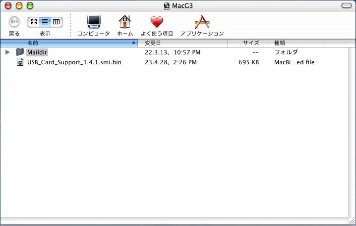 ・デスクトップ上に sambaサーバー内の MacG3 フォルダーのアイコンが表示されますのでこれを開けば上記のように内容が表示されますのでデータ等のやり取りができます。