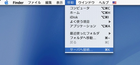 ・上部メニューより『移動』⇒『サーバーに接続』をクリックします。