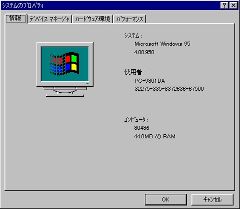 :Microsoft Windows95 <4GB(実質3.8GB)中 2GB使用>