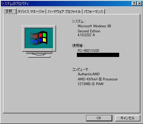 ※ AMD K6-ⅡのはずだがWindowsのシステムプロパティでは K6-Ⅲ ???