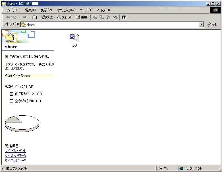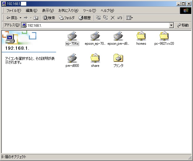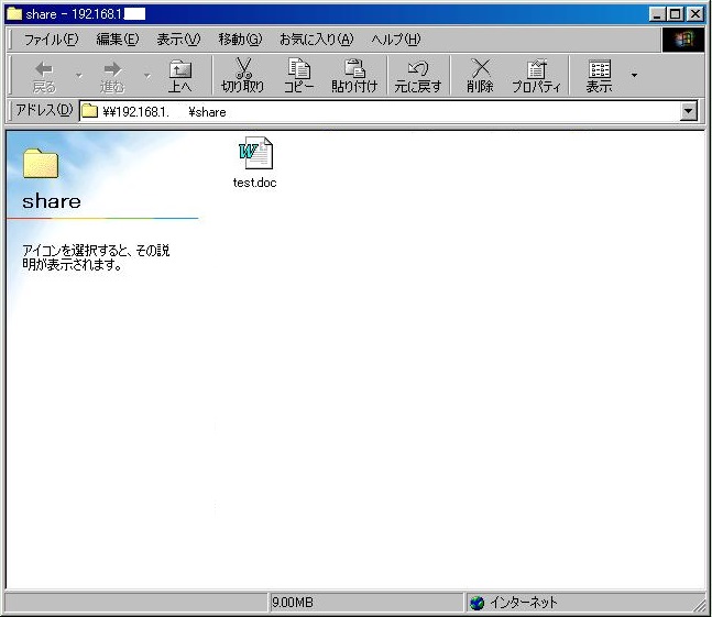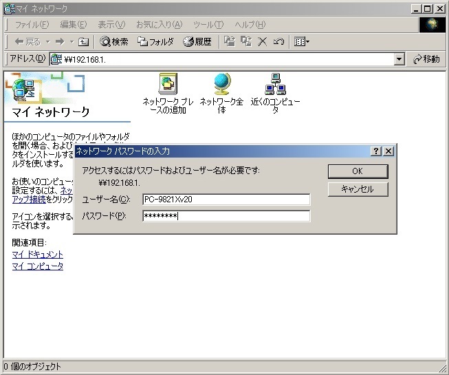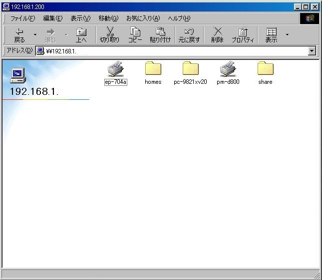 デスクトップ上の『マイ ネットワーク』を開きアドレス欄にサーバーのアドレスを入力し Enter