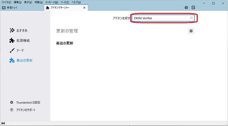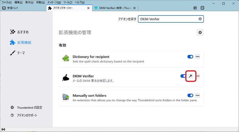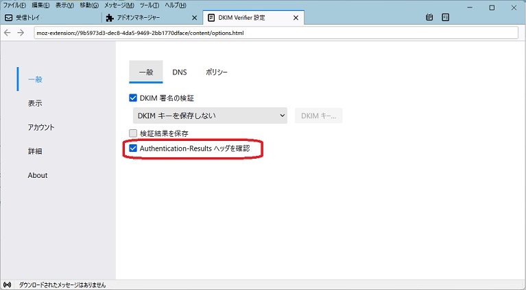 ここでは、ThunderbirdにDKIM Verifier(アドオン)を追加して視覚的に SPF・DKIM・DMARC を確認します。